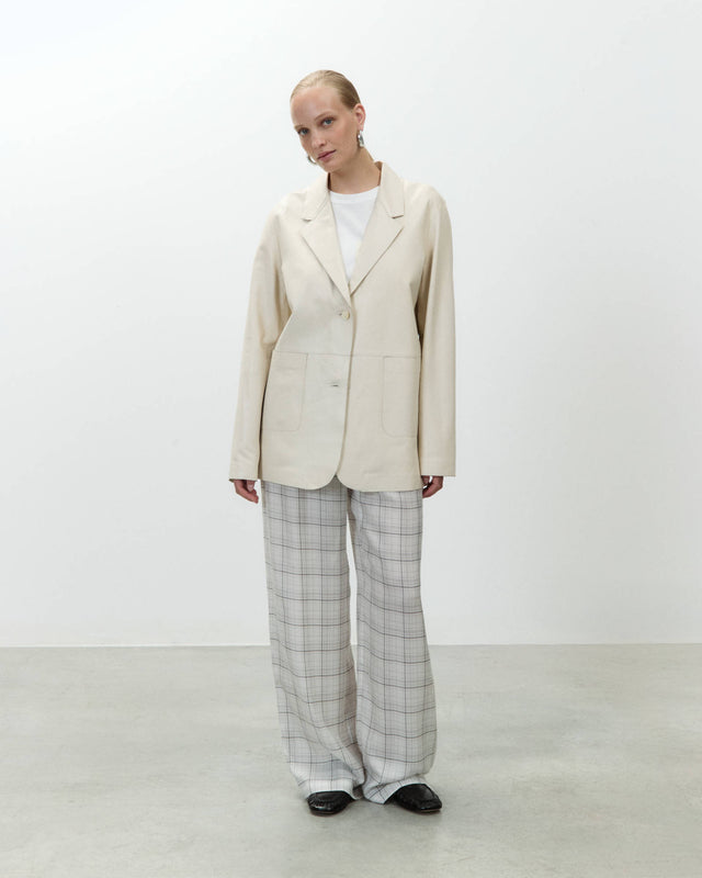 The model wears size 40, size S in knitwear and size 26 in denim.