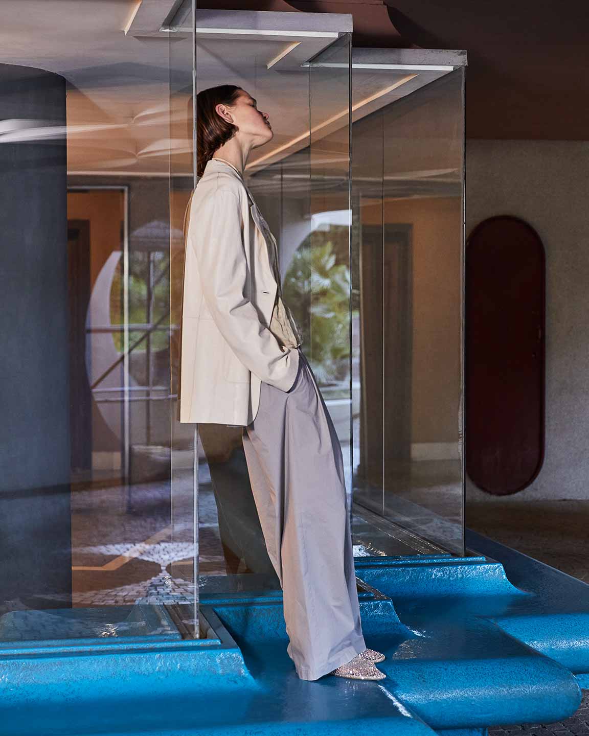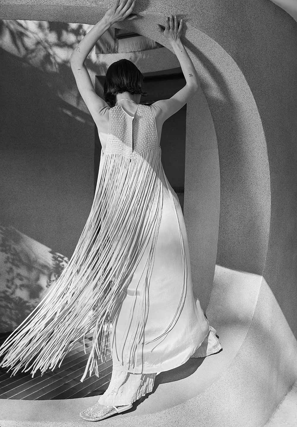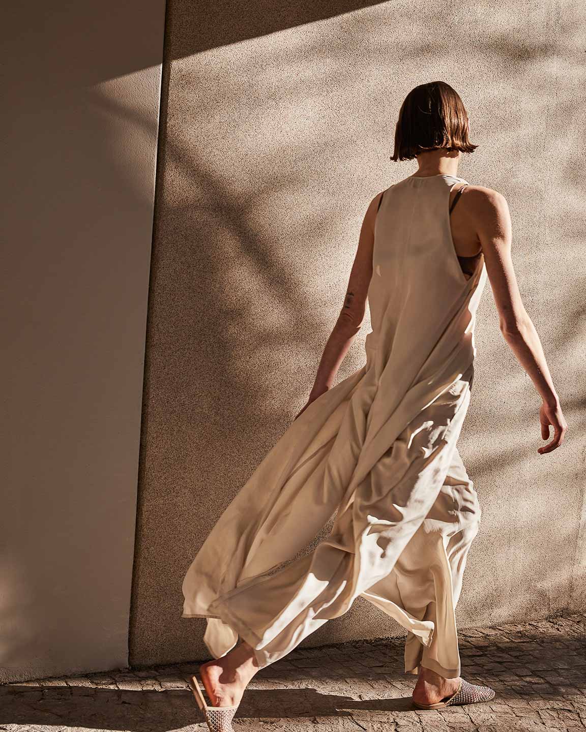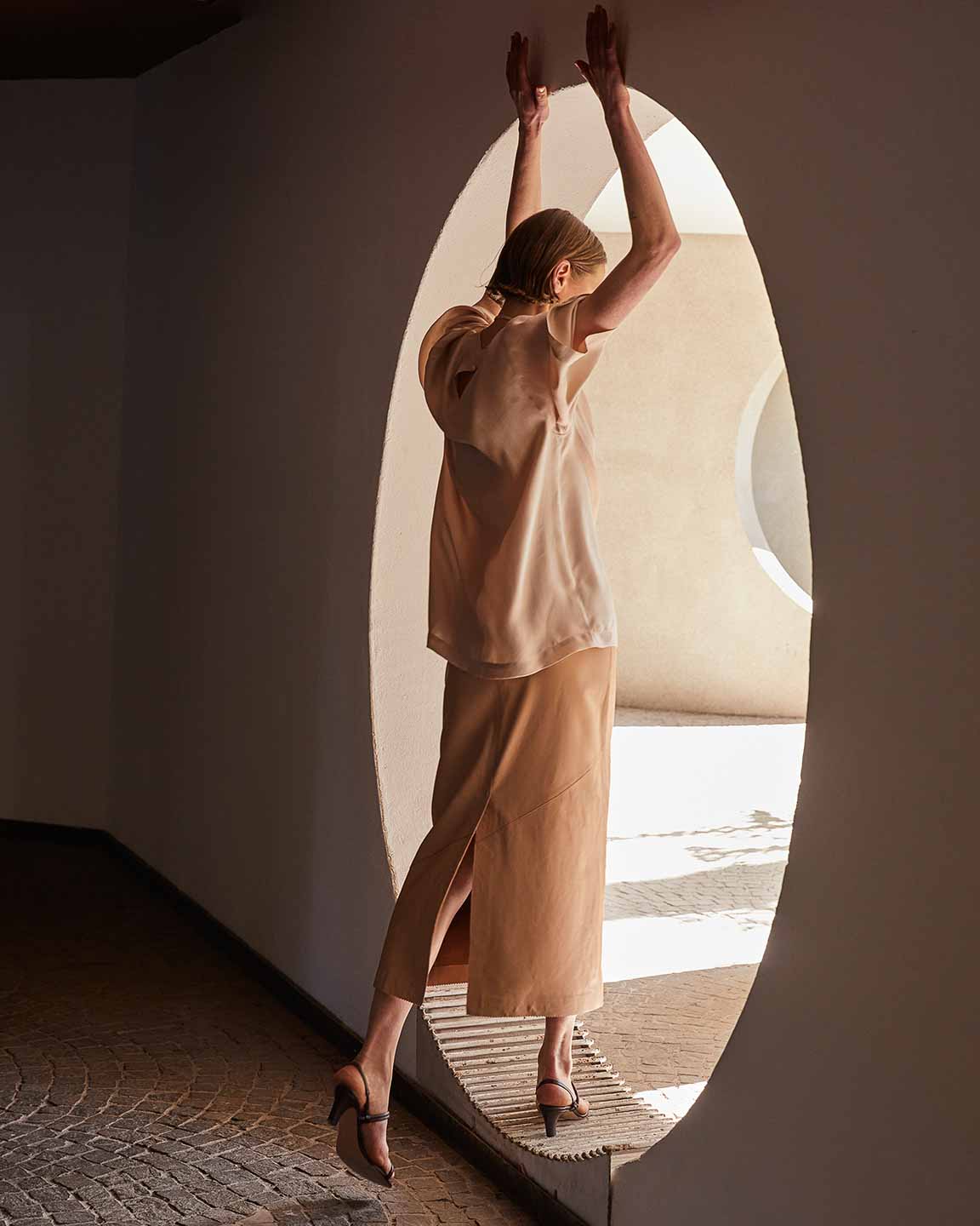 The lines of architecture guide the eyes: they trace directions, open perspectives, and invite us to slow down. Body and space mirror each other in a succession of solids and voids, shadow and clarity, presence and distance. A subtle tension holds all the contrasts together, in balance.