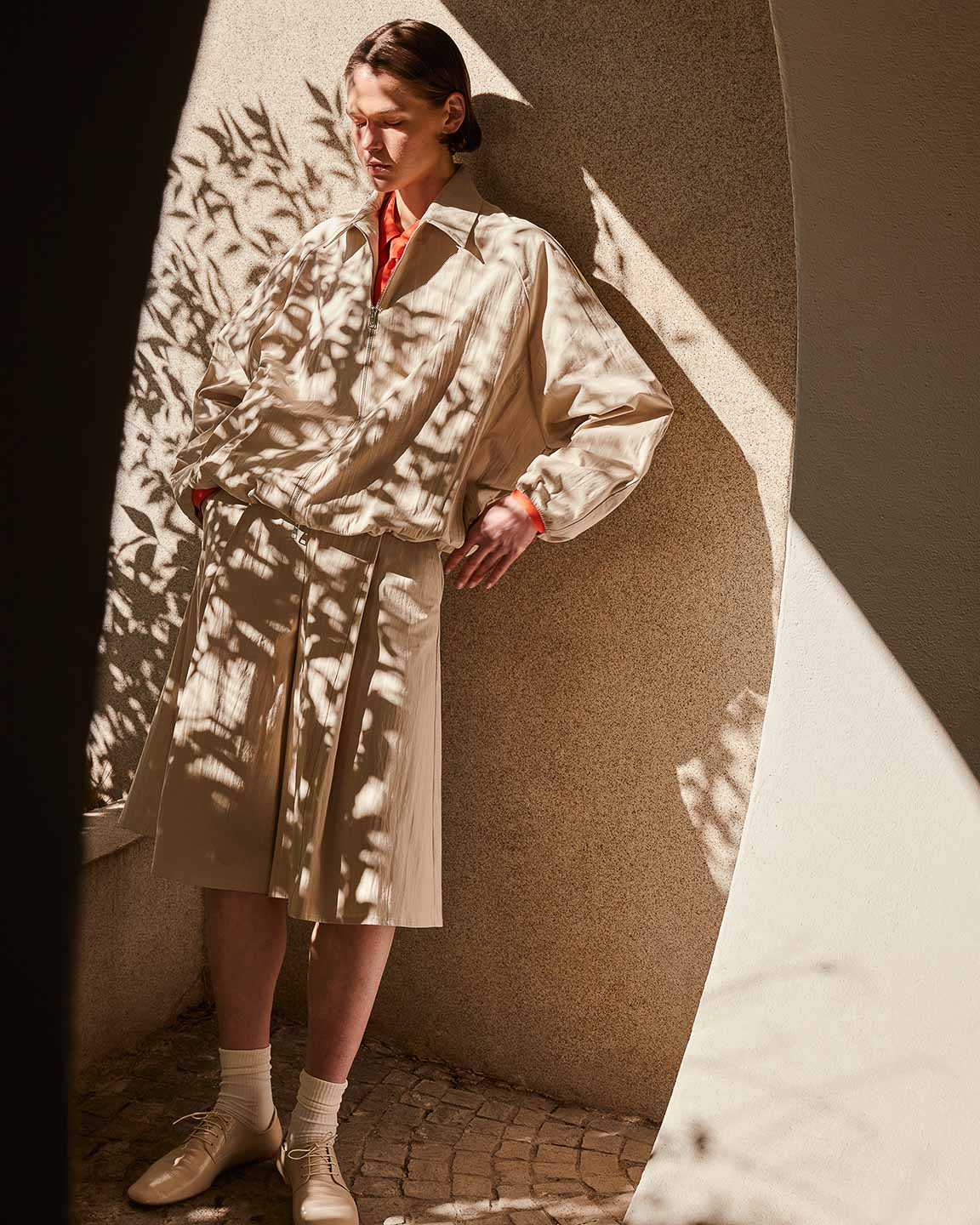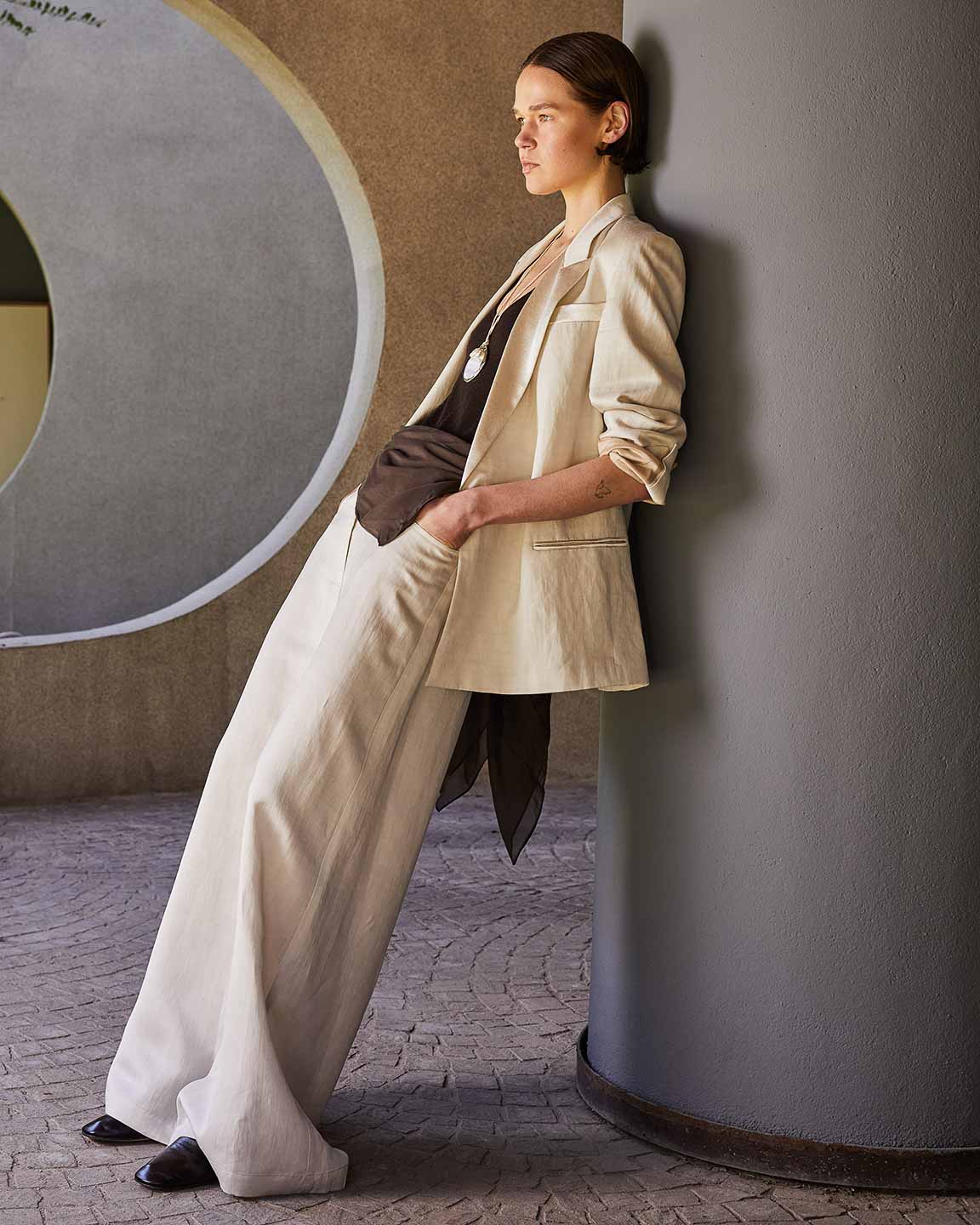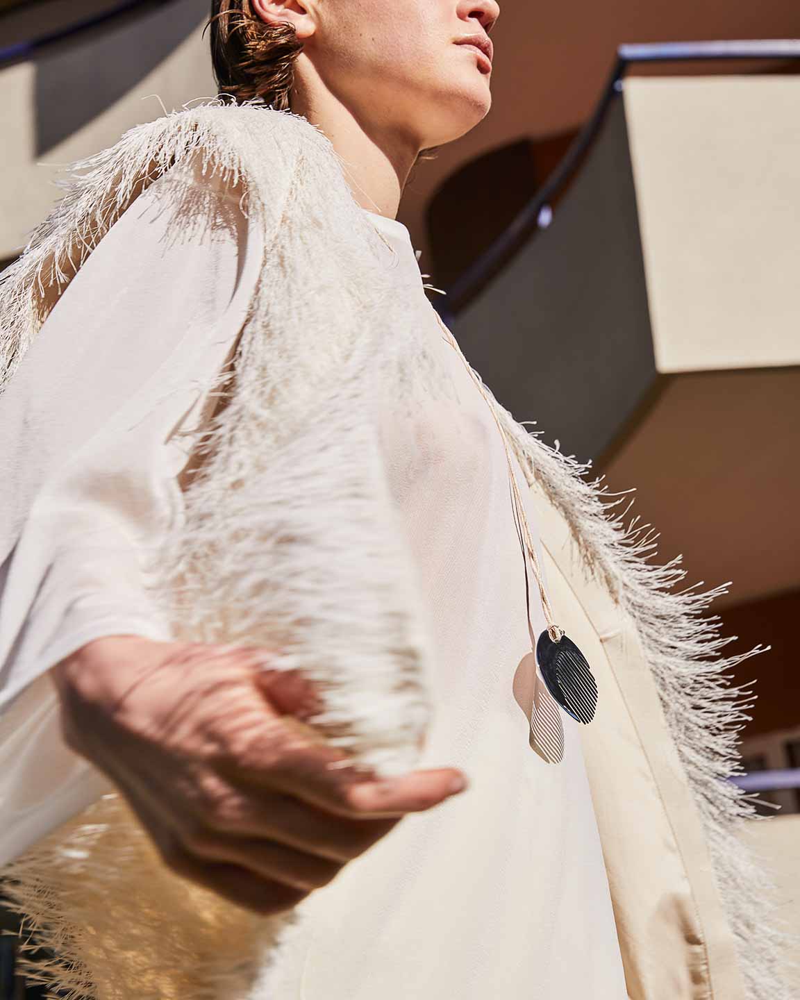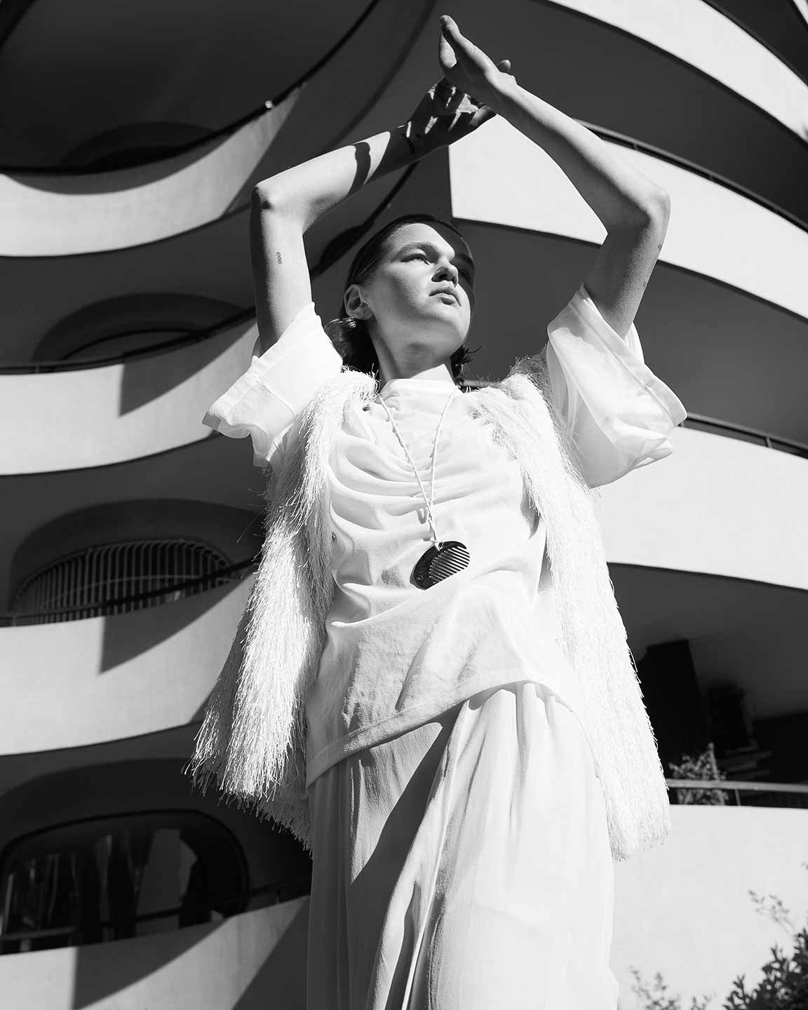 The lines of architecture guide the eyes: they trace directions, open perspectives, and invite us to slow down. Body and space mirror each other in a succession of solids and voids, shadow and clarity, presence and distance. A subtle tension holds all the contrasts together, in balance.