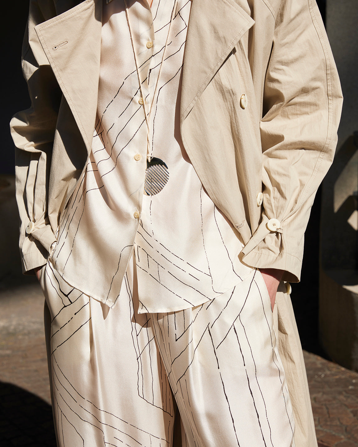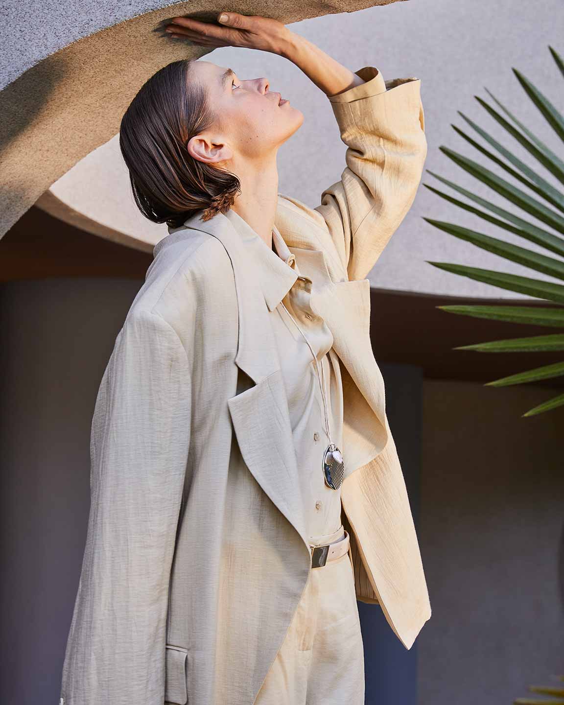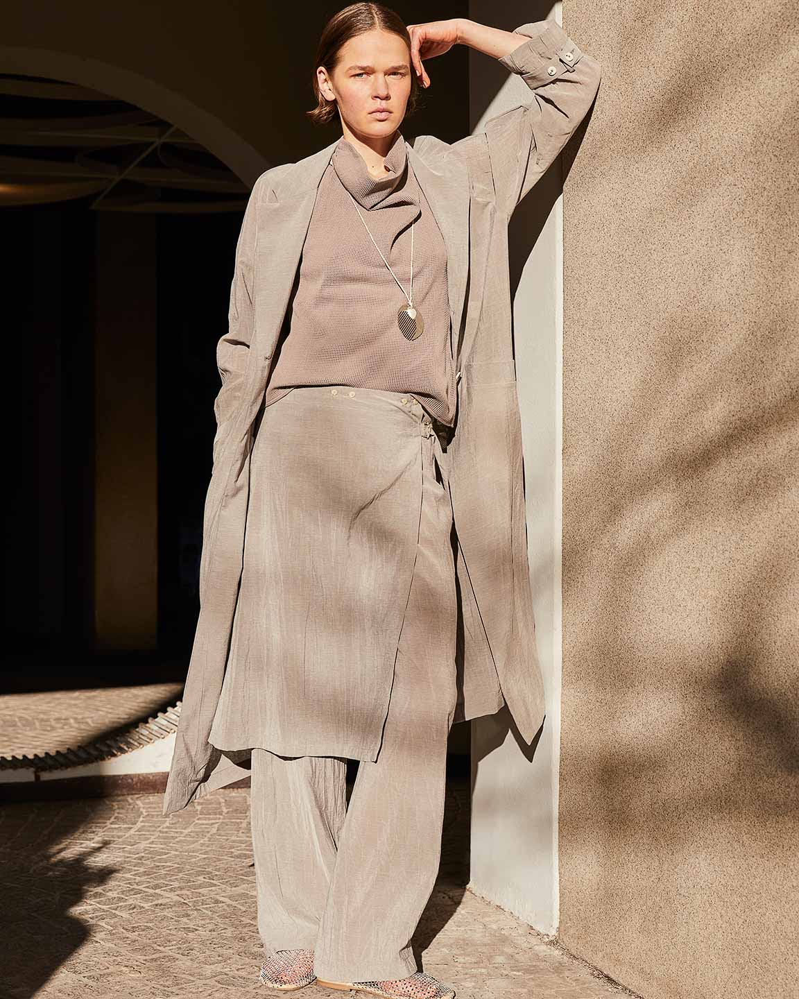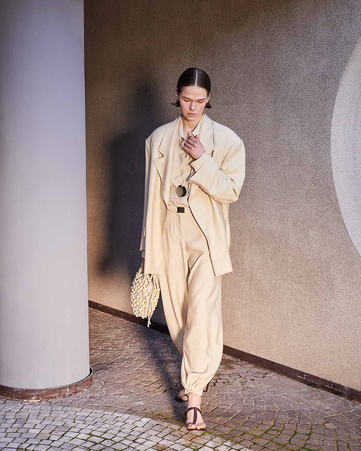 The lines of architecture guide the eyes: they trace directions, open perspectives, and invite us to slow down. Body and space mirror each other in a succession of solids and voids, shadow and clarity, presence and distance. A subtle tension holds all the contrasts together, in balance.