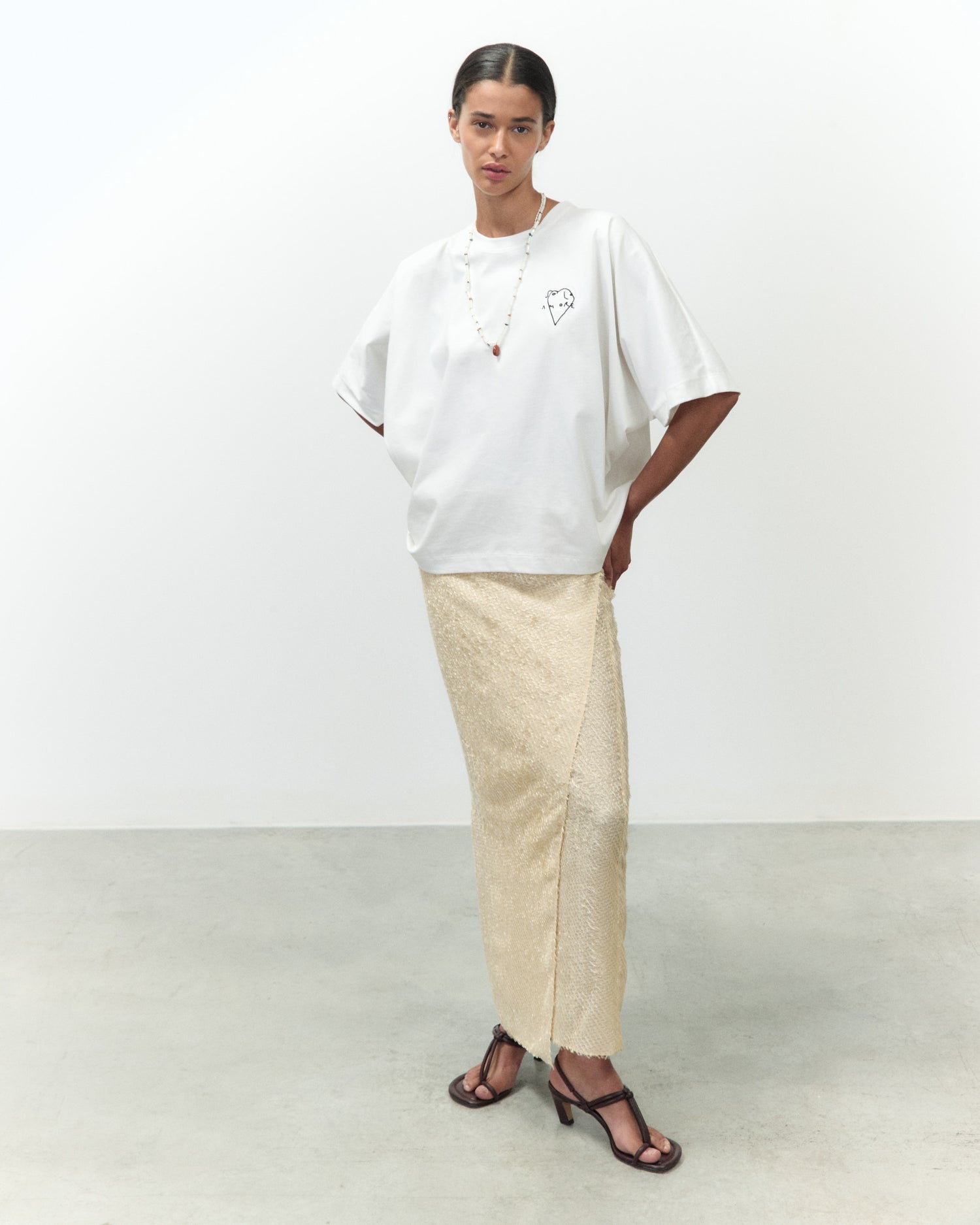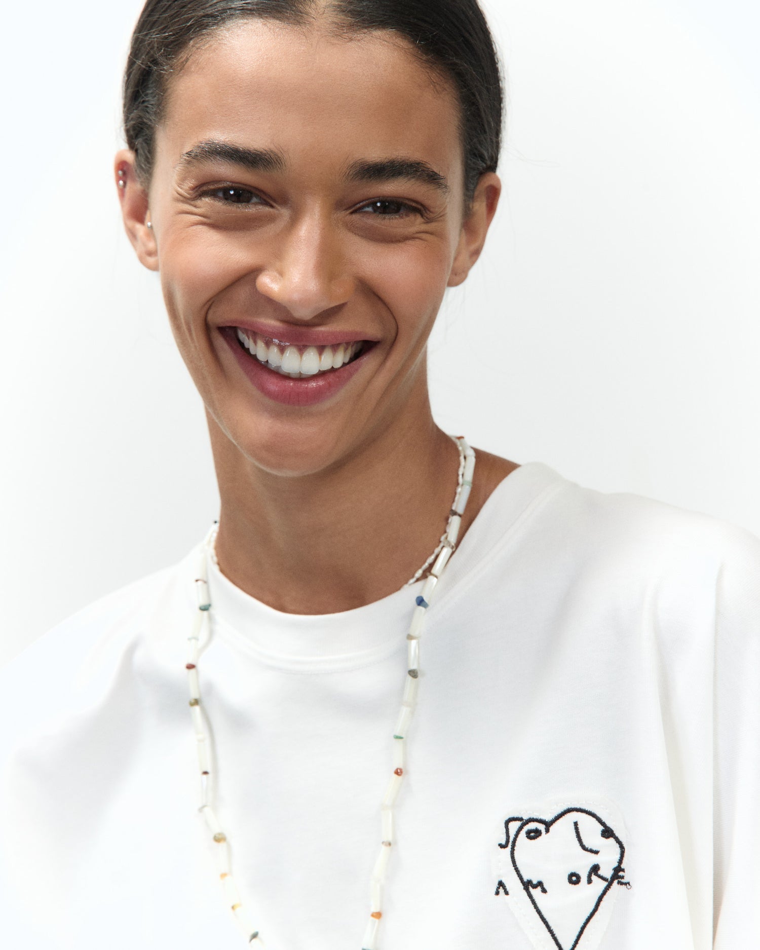 Curiosity Atelier , the collection within a collection, is back. This season, ALYSI has created a capsule collection of t-shirts in collaboration with Ccontinua and Mamt, an Italian creative duo based in Amsterdam. He, a graphic designer, and she, a ceramist, blend their creative visions into unique design objects. Instinctive, almost childlike illustrations tell the story of the many facets of love.