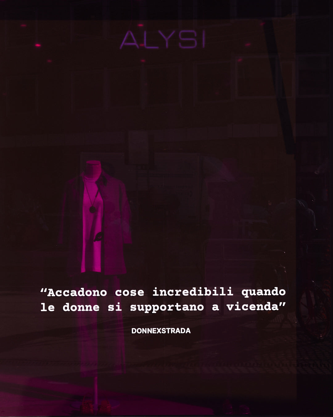 Just like a bond of friendship between women, the same is true for DONNEXSTRADA and ALYSI, a liaison, even before a partnership, between two realities that look at change with optimism, implementing it every day, not just on pre-established occasions.