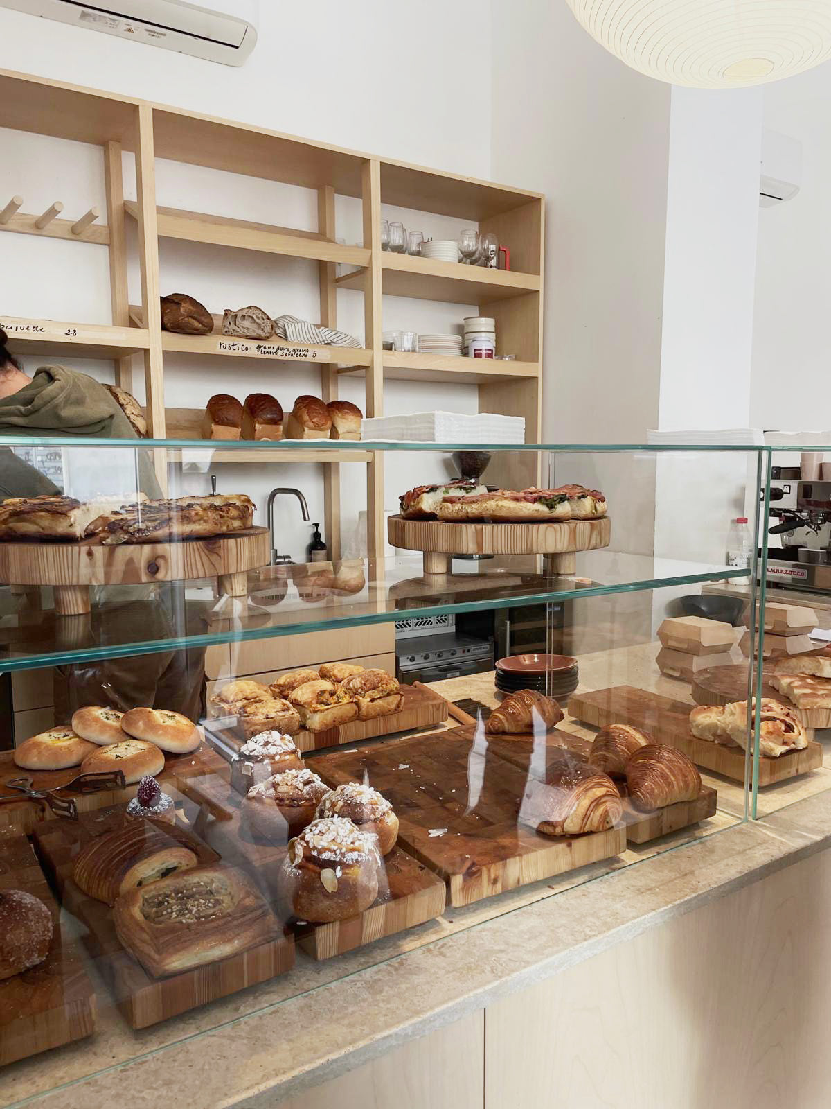 In the Esquilino district, Forno Conti & Co. is an artisanal bakery where bread, pizza, and pastries are made with organic flour and sourdough. The minimalist space, designed by a Roman studio run by women, is conceived as a refuge from the frenetic pace of the city: a place to stop, slow down, and enjoy food as an experience.