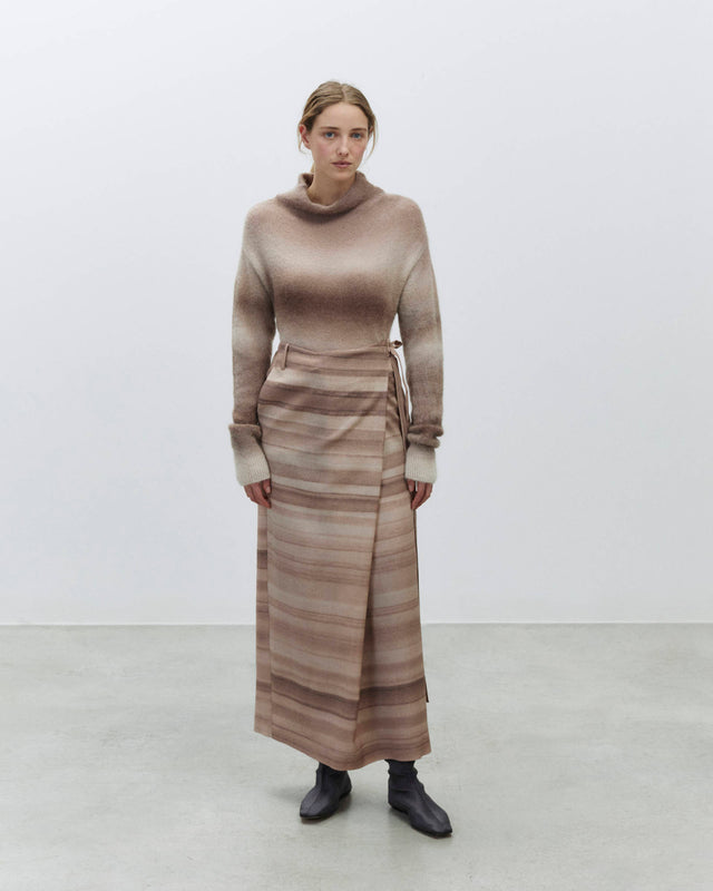 - Long skirt in 100% virgin wool fabric with a shaded effect